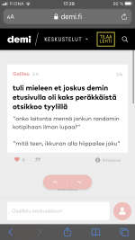 Pistän tän Demi-novellin linkin tähän vaan sen takii, koska tää oli vissiin ainut Demi-novelli, jonka tekemisen kulkua seurasin. Seurasin tän kulkua siis johonkin sen puoliväliin asti, jolloin kirjoittaja piti vissiin jonkinlaista taukoo kirjoittamisesta, ja unohdin seurata novellin kulkua uudestaan. Vähän ennen Demin sulkemista kävin lukasee uudet luvut sinne, mutta novelli on Demi-novellien tapaan jäänyt keskeneräiseksi. Sääli kyllä, kun olisin halunnut jatkoa tälle, vaikka ei tää mikään mestariteos olekaan.