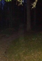 Joo elikkäs päätin lähtee iltakävelylle ja tutkimaan tässä vieressä olevaa mehtää jossa en ollu aiemmin käyny, könyän sit pimeessä sellasta polkua ison mäen päälle ja löytyy monta eri polkua ja päätän ottaa vähän kuvia ja näyttää kaverille et nyt löyty hyvä hengailu paikka. Noh, juuri kun olen ottamassa kuvaa ilmestyy tällainen vaalea otus kameralle ja saan siitä kuvan: