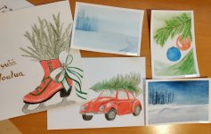 Tein vähän kortteja, haluaisin opetella maalaamaan. Mulla on käytössä peitevärit ala-asteelta (ei tullut koskaan palautettua niitä koululle) ja vesivärikynät.
